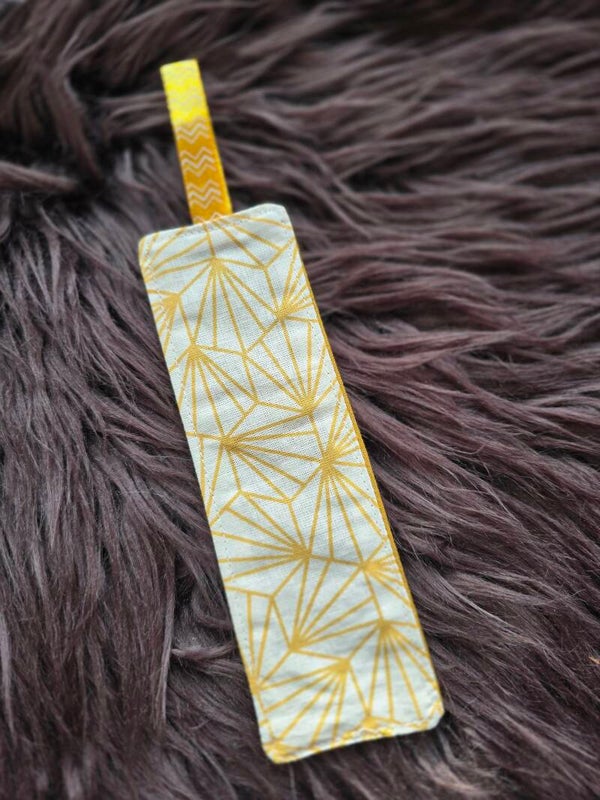 À la fois souple et élégant, ce marque-page en tissu se glisse délicatement entre les pages de votre livre. Surmonté d’un petit ruban, il apporte une touche de charme à vos lectures. Un compagnon idéal pour ne jamais perdre le fil de votre histoire !